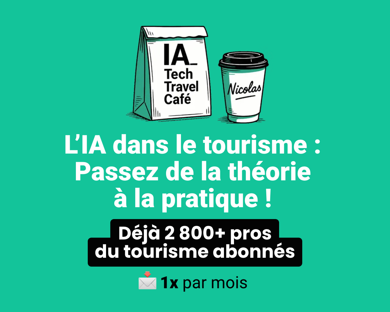 Chaque mois, IA, Tech & Travel Café vous guide dans l’univers de l’IA appliquée au tourisme. Cas d’usage concrets, outils testés, guides pratiques, interviews d’experts… le tout expliqué simplement et sans jargon compliqué, pour vous aider à intégrer l’IA dans votre quotidien :)