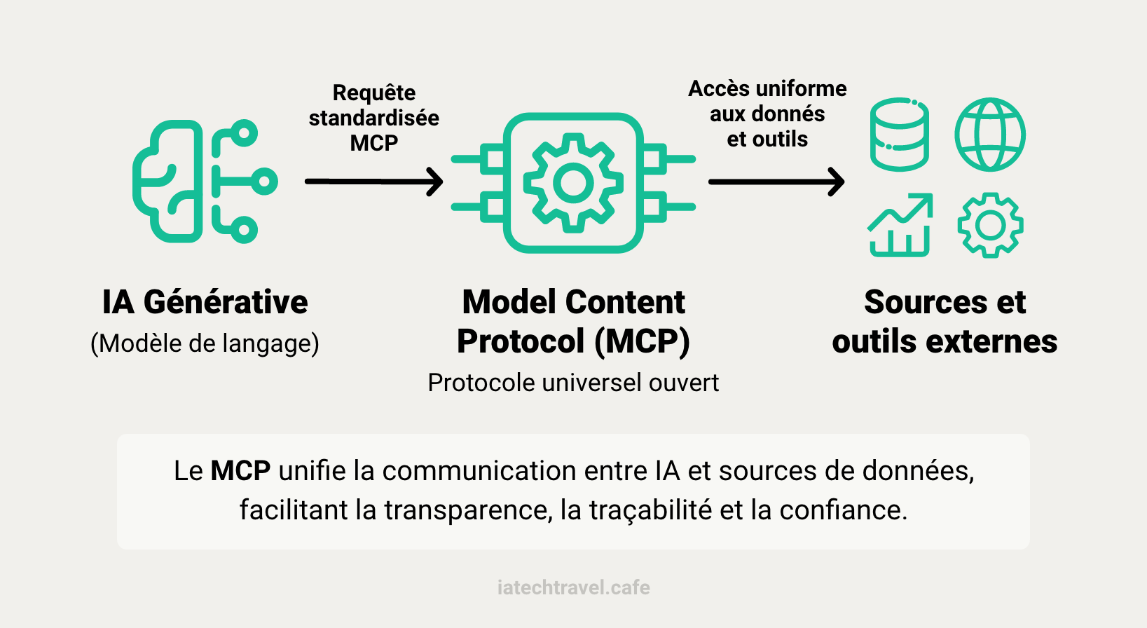 J'entends de plus en plus parler de MCP mais c’est quoi ? (Anonyme) MCP, ça veut dire “Model Context Protocol” et c’est un protocole standard qui permet à un modèle d’IA de communiquer avec des outils ou des bases de données externes de manière structurée.