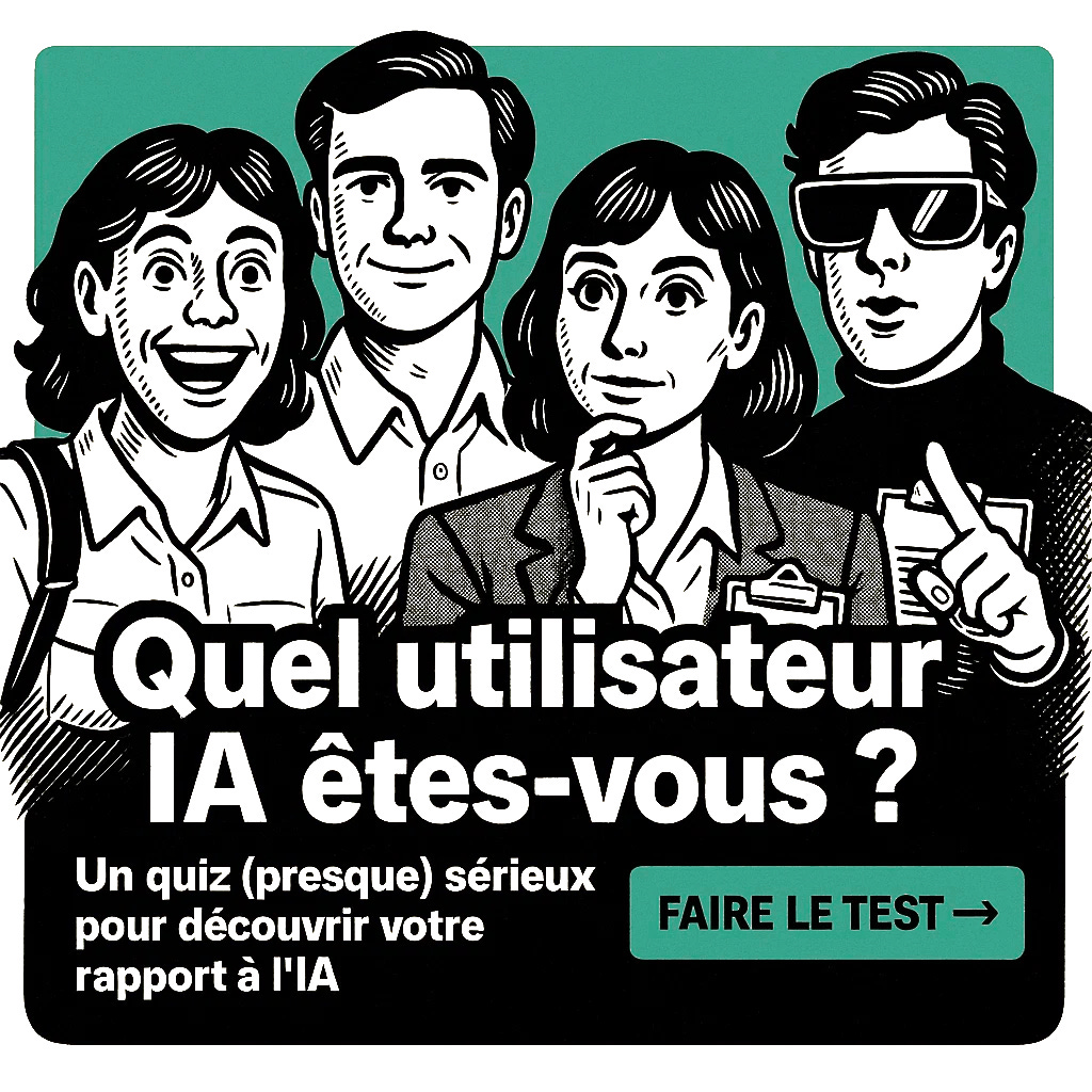 Alors, avec l’aide de l’IA (Claude.ai, on en reparle à la rentrée), je vous ai concocté un test pour savoir : “Quel type d’utilisateur IA êtes-vous ?”